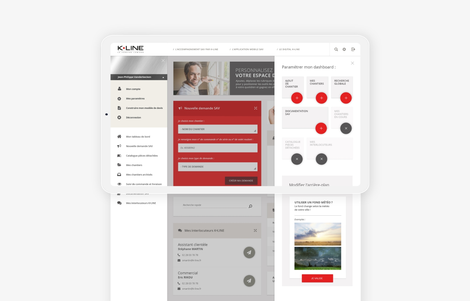 To address this commercial aspect, our UX/UI teams have created a tool presenting itself as a complete solution for managing the professional space of K Line resellers.