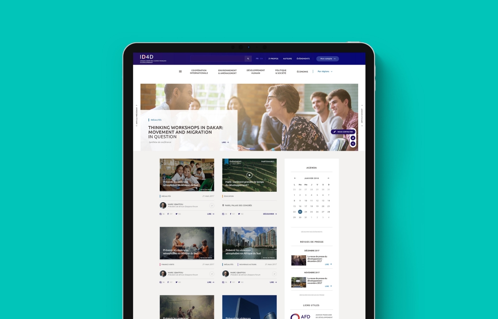 Avec de nombreux articles et études, ID4D souffrait d'une visibilité limitée, rendant la navigation difficile et n'optimisant pas son SEO pour attirer un trafic qualifié.