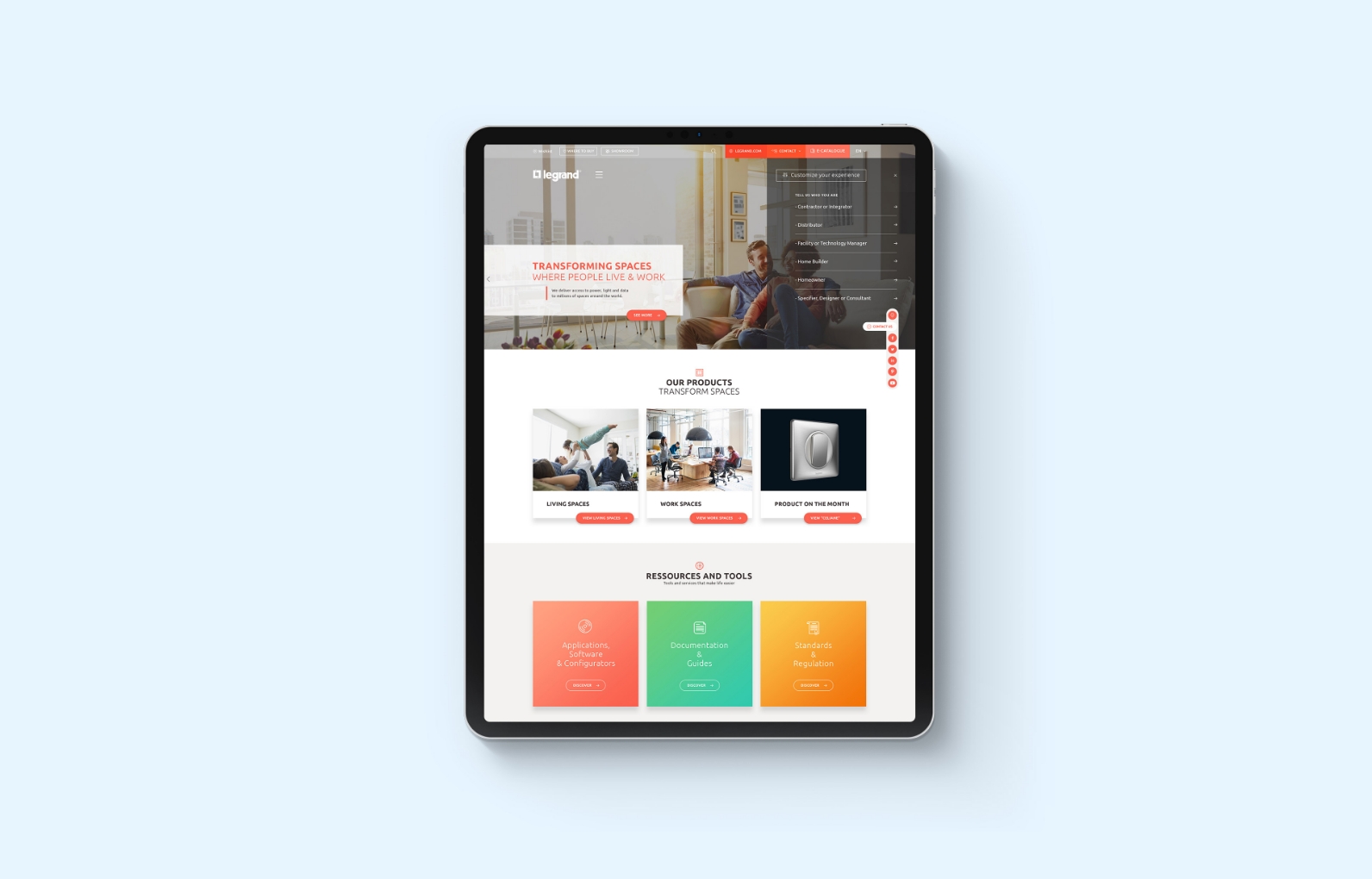 Pour répondre à ces défis, notre agence a accompagné l’entreprise Legrand dans une analyse approfondie de toutes ses filiales et de leurs habitudes de navigation. Les classifiant ainsi selon plusieurs catégories basées sur leur maturité digitale. Sur cette base, des typologies de sites web ont été développées, adaptées de manière précise à chacune des cibles.